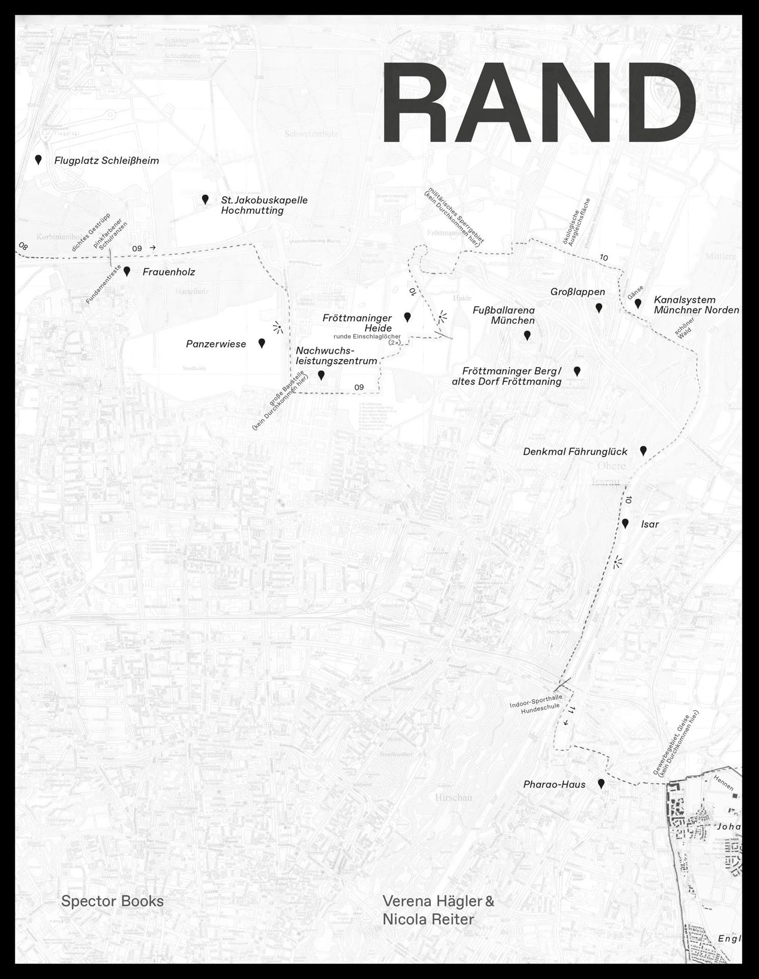 RAND vereint zwei Projekte aus dem Bereich der Landschaftsfotografie. Gegenstand beider Arbeiten sind die sich entwickelnden und verändernden (Landschafts-)Räume entlang der Stadtgrenze von München. Verena Hägler nimmt mit SALTROAD fotografisch einen verkehrsbelasteten, im Wandel begriffenen Transitraum in landwirtschaftlich genutzter Umgebung in den Blick. Die fotografischen Fragmente ergeben ein Mosaik, das auf das umfassendere Gepräge der Gegend verweist. Nicola Reiter beschäftigt sich in Agglomerationen mit dem Rand der Großstadt als einem Gebiet des Übergangs von urbanen Strukturen zur offenen Landschaft. Mit der Kamera hat sie München entlang der Stadtgrenze umrundet. Ihre eigenen Bildfolgen ergänzt sie durch historische Aufnahmen, die drastische Veränderungen sichtbar machen. Verena Hägler ist Fotografin und beschäftigt sich mit empirischer Stadtforschung. Nicola Reiter arbeitet als (Buch-) Gestalterin und publiziert eigene Projekte.